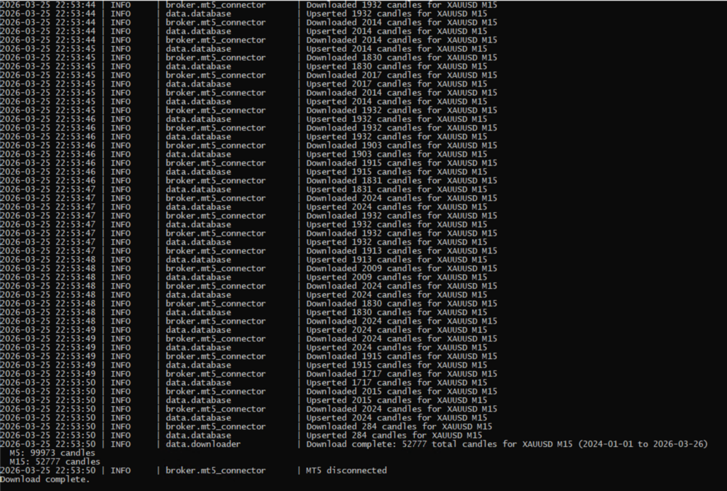 Claude generated the command and the logic to connect the trading platform and retrieve data automatically.